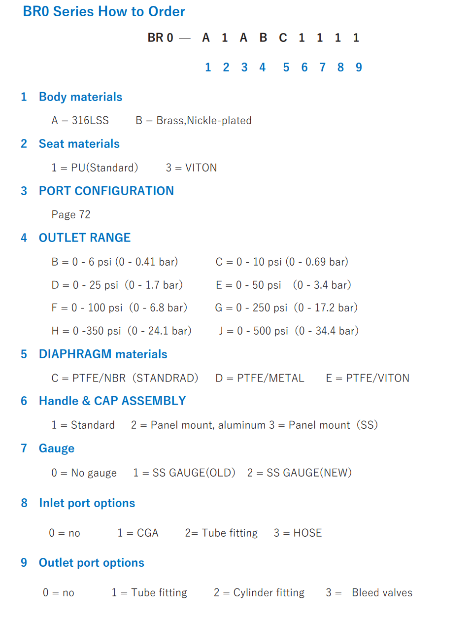 The BR0 series of steel cylinder pressure-reducing valves are suitable for gas source pressure output in laboratories, gas companies, scientific research and chemical units. They are designed as compact, economical, and practical pressure-reducing valves. Stainless steel or brass nickel-plated structures can be selected. Inlet pressure 25MPa; The outlet pressure is adjustable from 0 to 2.5MPa. Safe and reliable diaphragm pressure sensing design. The BR0 series of steel cylinder pressure-reducing valves are suitable for gas source pressure output in laboratories, gas companies, scientific research and chemical units. They are designed as compact, economical, and practical pressure-reducing valves. Stainless steel or brass nickel-plated structures can be selected. Inlet pressure 25MPa; The outlet pressure is adjustable from 0 to 2.5MPa. Safe and reliable diaphragm pressure sensing design. The BR0 series of steel cylinder pressure-reducing valves are suitable for gas source pressure output in laboratories, gas companies, scientific research and chemical units. They are designed as compact, economical, and practical pressure-reducing valves. Stainless steel or brass nickel-plated structures can be selected. Inlet pressure 25MPa; The outlet pressure is adjustable from 0 to 2.5MPa. Safe and reliable diaphragm pressure sensing design.